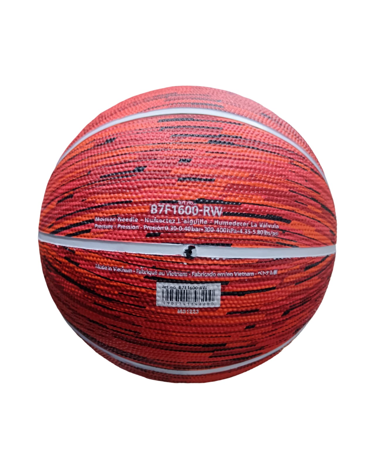 El balón de básquetbol Molten B7F1600RW es un balón de alta durabilidad, diseñado para entrenamiento y recreación tanto en interiores como exteriores (streetball). Confeccionado en hule natural con 8 paneles, cuenta con cámara de butilo y destaca por su llamativo diseño en color rojo y blanco, talla n.º 7 y gran resistencia al desgaste.