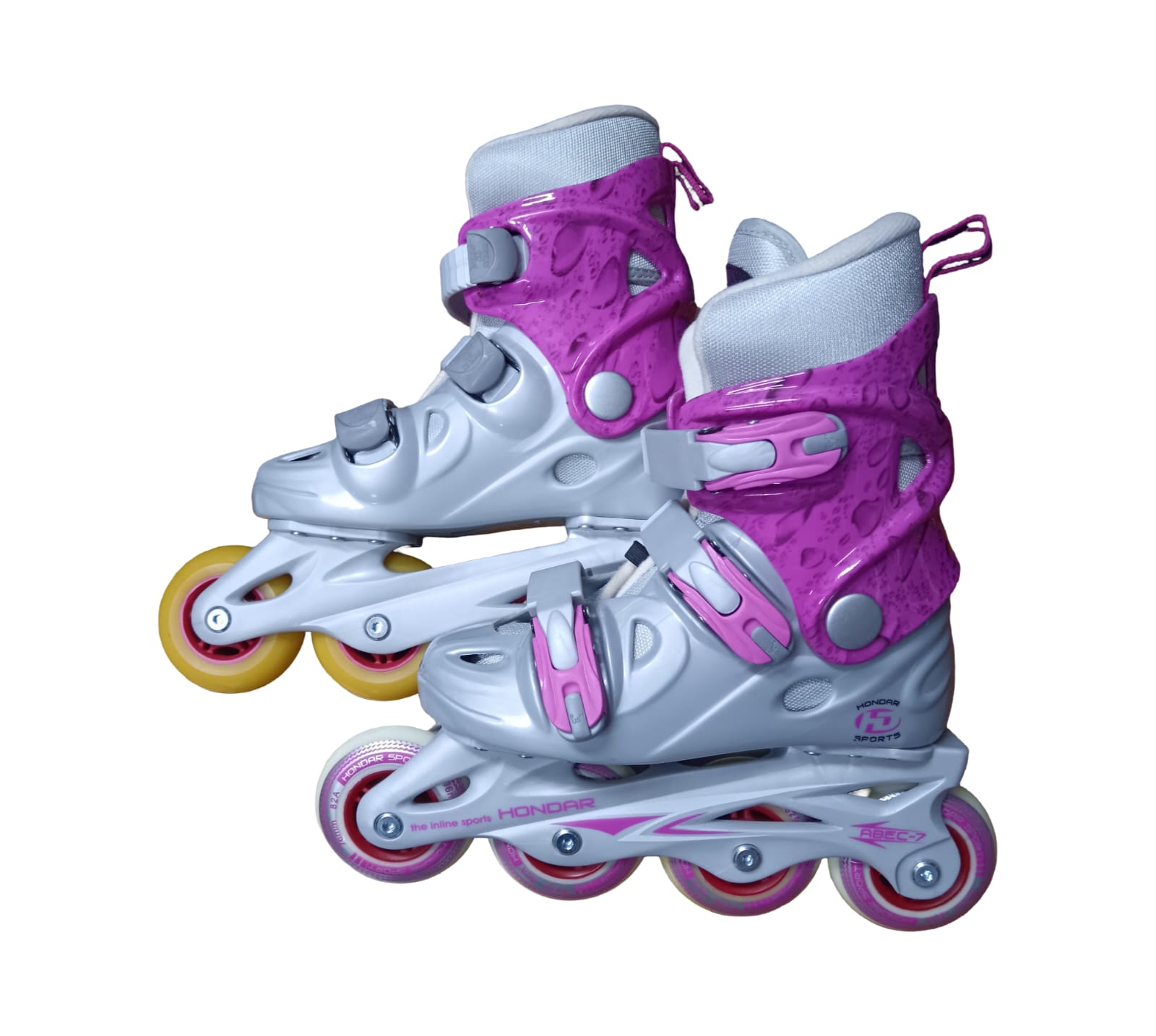 Los patines en línea Holy de la marca Hondar son ideales para principiantes y para aquellos que buscan hacer rutas o iniciarse en la modalidad Freestyle slalom o FSK. Con un botín de bota dura que ofrece protección al tobillo, estos patines son perfectos para aquellos que buscan seguridad y comodidad mientras patinan.